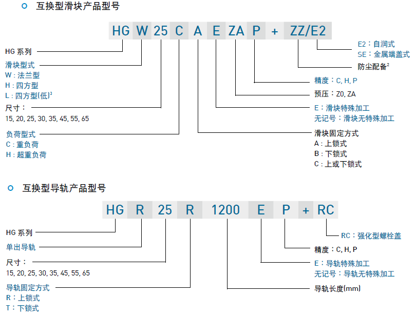互換性直線導(dǎo)軌產(chǎn)品型號