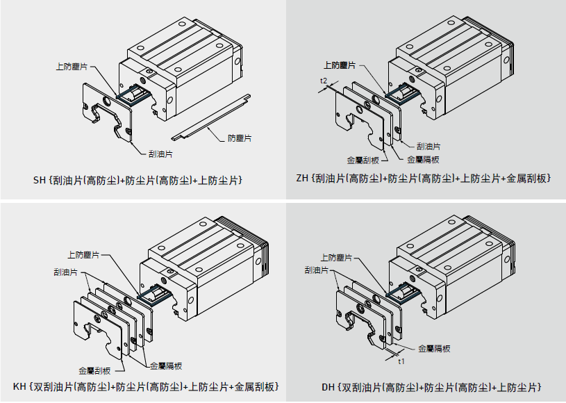 阻止加工鐵屑或塵粒進入滑塊里面,破壞珠道表面而降低直線導(dǎo)軌壽命。