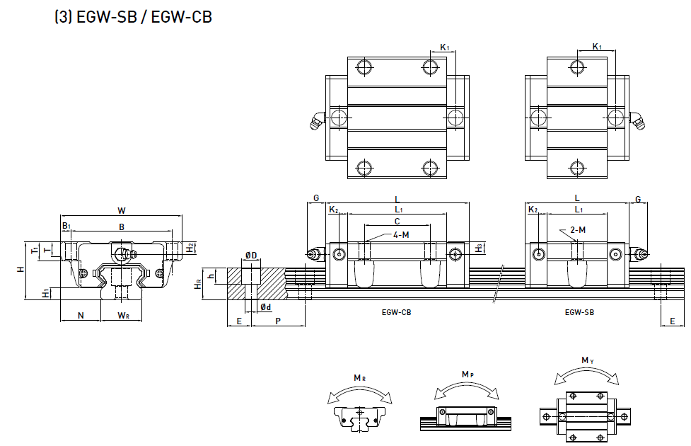 EG系列使用四列鋼珠承受負荷設計,使其具備高剛性、高負荷的特性,同時具備四方向等負載特色、及自動調心的功能, 可吸收安裝面的裝配誤差,得到高精度的訴求。 加上降低組合高度及縮短滑塊長度,非常適合高速自動化產業機械及空間要求的小型設備使用。