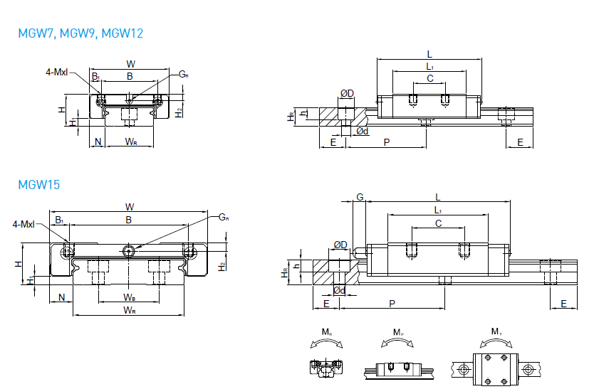 而MGW(寬幅)系列則是加寬滑軌之設(shè)計大幅提升力矩負(fù)荷能力,可單軸使用。 哥德型四點(diǎn)接觸設(shè)計,可承受各種方向之負(fù)荷并具有高剛性之特點(diǎn)。 滑塊裝有微小型保持鋼絲,取下滑塊鋼珠也不會脫落。
