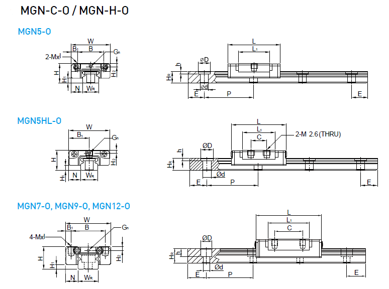在MGN-O中,它同樣具體體積小、輕量化,滑塊主體的一部分采用了樹脂材料,重量減少約20%,特別適合小型化設(shè)備使用。不銹鋼材質(zhì)之線性滑軌,包含滑塊、滑軌及其它金屬配件如鋼珠、保持器等,皆使用不銹鋼材質(zhì),具備防銹的特性。采用哥德型四點(diǎn)接觸設(shè)計,可承受各方向負(fù)荷,具備剛性強(qiáng),精度高等特性。有鋼珠保持器設(shè)計,在精度允許下具備互換性。