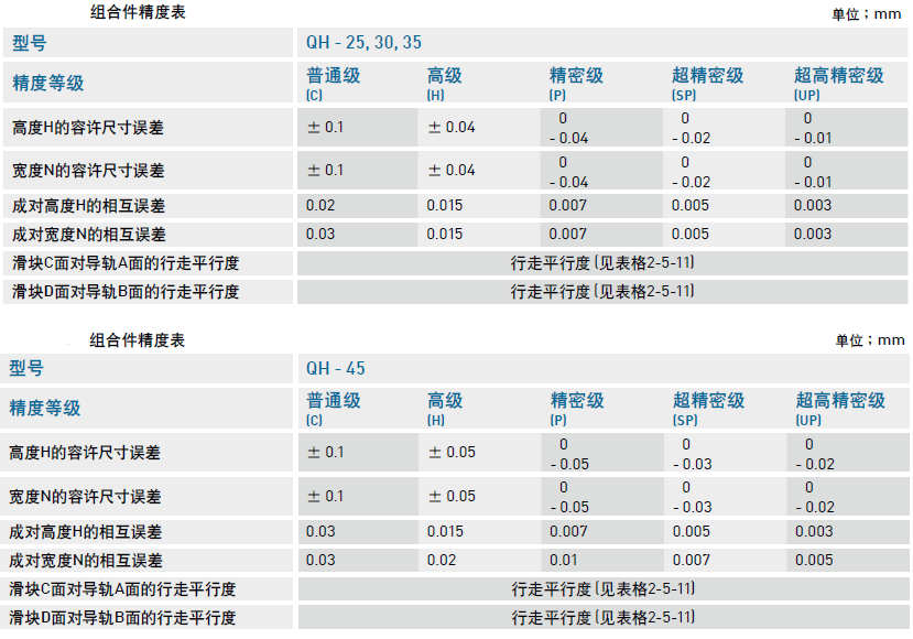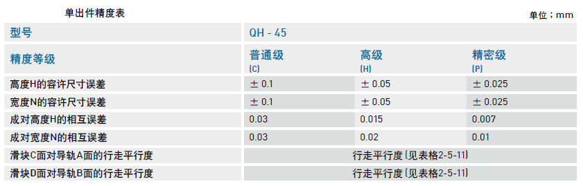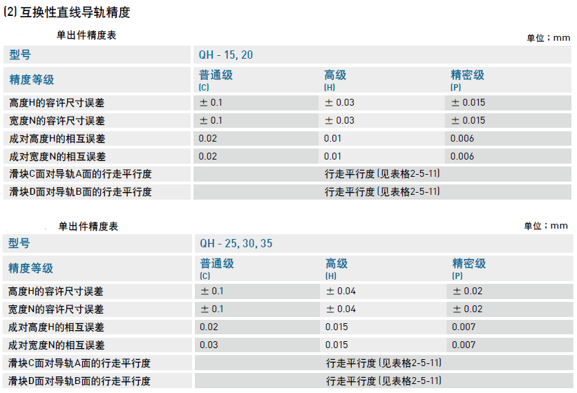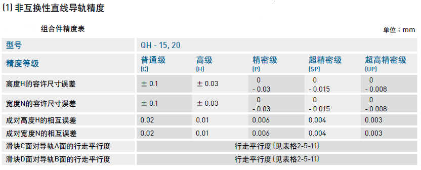 靜音式重負荷型滾珠直線導(dǎo)軌QH系列精度等級